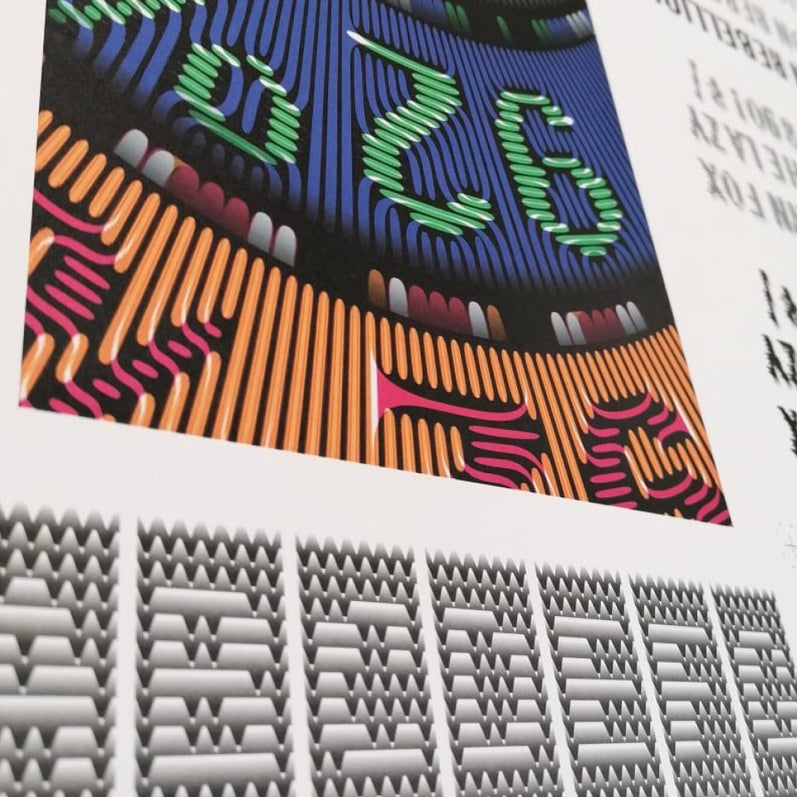 Hansje’s designs are layered graphic landscapes that invite the gaze to linger. Amorphous hairy letter forms, a churning ocean of lines. Trippy colours, surfaces, complexity. A body in motion, temporarily frozen... What it says? The viewer has to make an effort to find out, and this is what is so great about it. What you see can evoke memories of episodes from the history of design, a time when a kaleidoscopic zest for ornamentation or a brilliant quirkiness was the ideal.